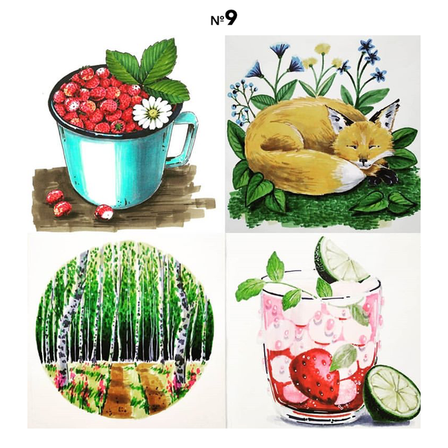 Рисовать можно в любом удобном для вас режиме — каждую среду вместе со мной или все работы в один день. Главное — к финалу (до конца 28 июня) выполнить все марафонные задания и опубликовать их у себя на страничке в инстаграме отдельным постом с хэштегом #марафон_от_v0lha_финал (все 4 фото в виде коллажа, а если рисовали на отдельных листочках, то можно просто сфотографировать все 4 работы вместе в одной фотографии).